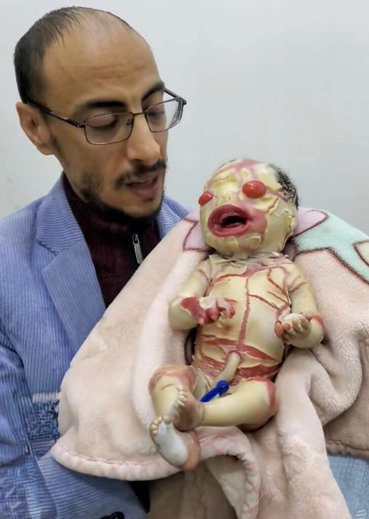 • وُلد الطفل في 26 أكتوبر 2025 بجلد سميك ومتشقّق نتيجة مرض وراثي نادر.