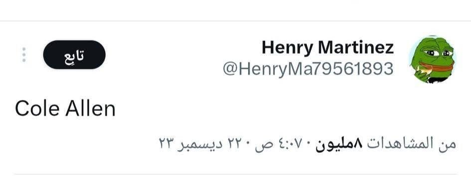 خلال الساعات الأخيرة، انتشرت بشكل واسع على منصة X (Twitter) تويتة غامضة لا تحتوي سوى على اسم: Cole Allen، صادرة عن حساب شبه مجهول لم ينشر أي محتوى آخر منذ إنشائه في ديسمبر 2023.