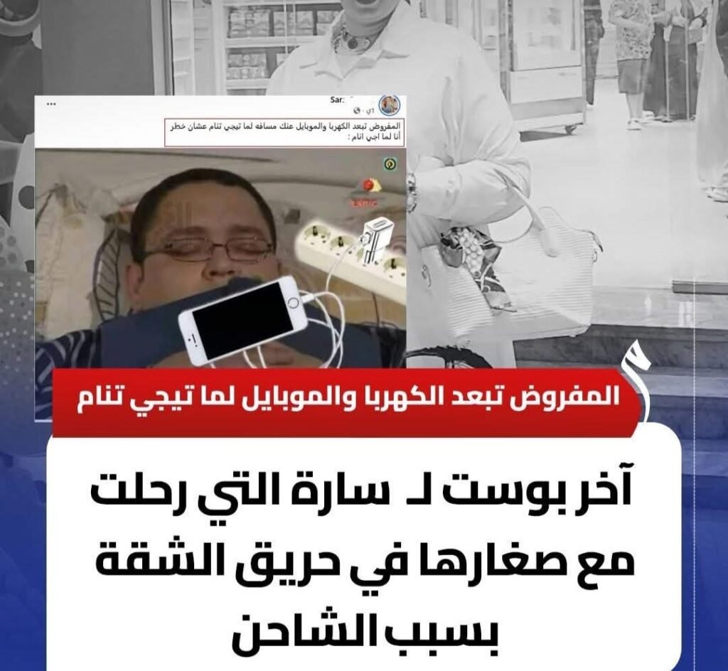 في مأساة موجعة هزّت مواقع التواصل الاجتماعي، رحلت الشابة سارة مع طفليها إثر حريق اندلع في شقتها بسبب شاحن موبايل تُرك موصولًا بالكهرباء أثناء النوم.