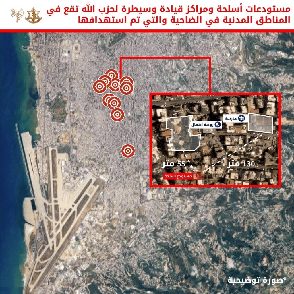 جيش الدفاع استكمل موجة جديدة من الغارات على ضاحية بيروت الجنوبية: على مدار الساعات الماضية تم استهداف مستودعات أسلحة ومقرات قيادة إرهابية وبطارية صواريخ لحزب الله في بيروت