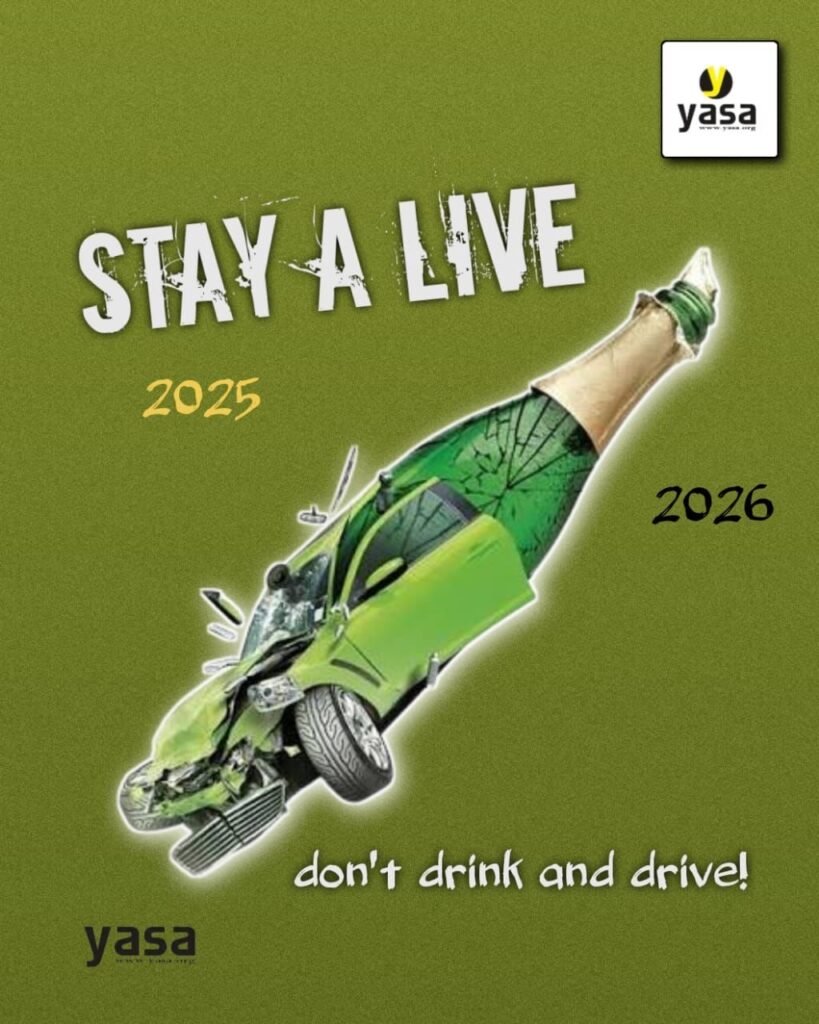 وبمناسبة نهاية العام، دعت جمعية اليازا المواطنين، سائقين ومشاة، إلى عدم تحويل فرحة العيد إلى مآسٍ وحوادث مرورية، لا سيّما أنّ هذا العام شهد عددًا كبيرًا من الحوادث المؤلمة. كما شدّدت على ضرورة التحلّي بالقيادة الهادئة، وتوخي أقصى درجات الحذر، والالتزام بحزام الأمان، إضافة إلى اتباع الإرشادات التالية: