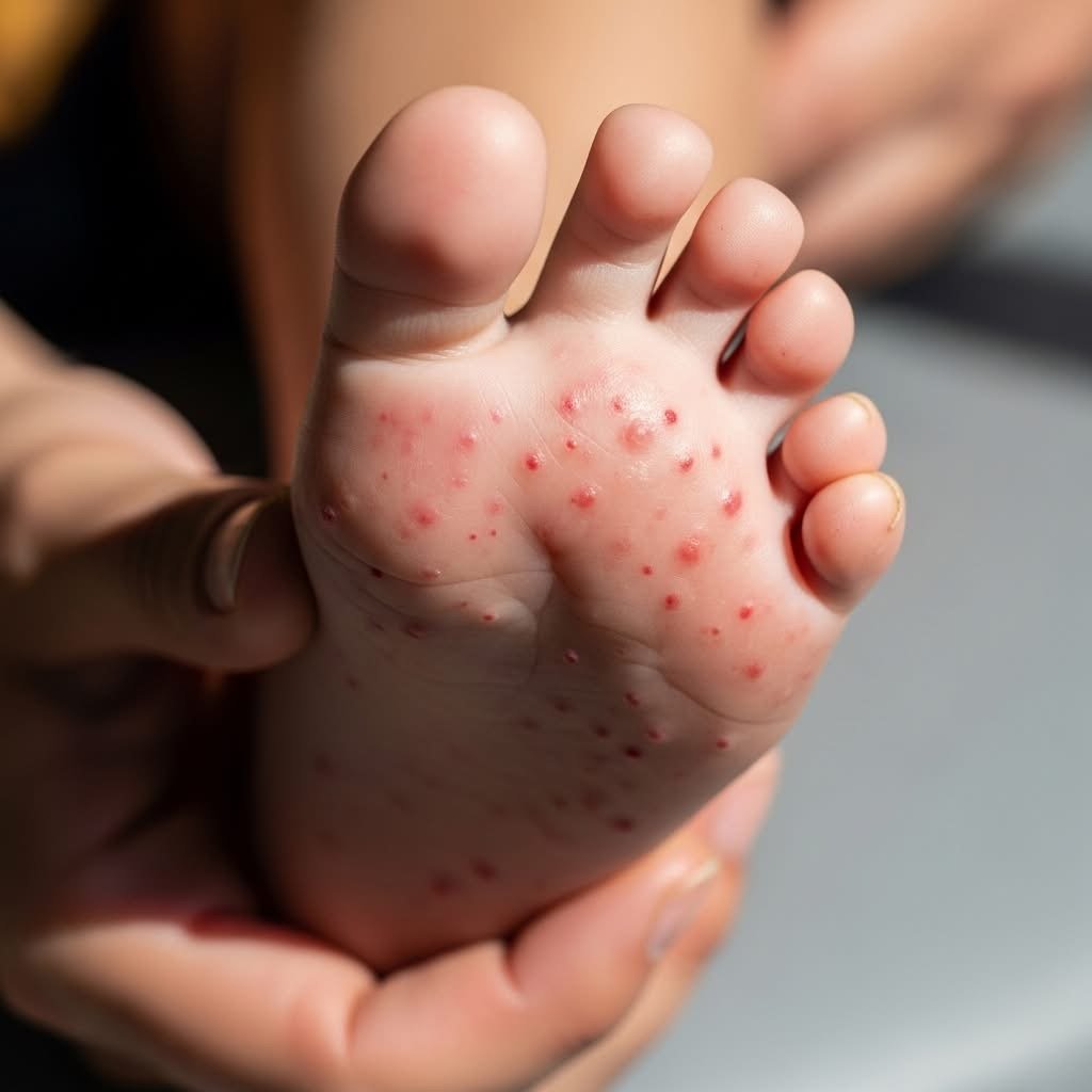 - طفح جلدي مؤلم في مناطق اليدين والقدمين.