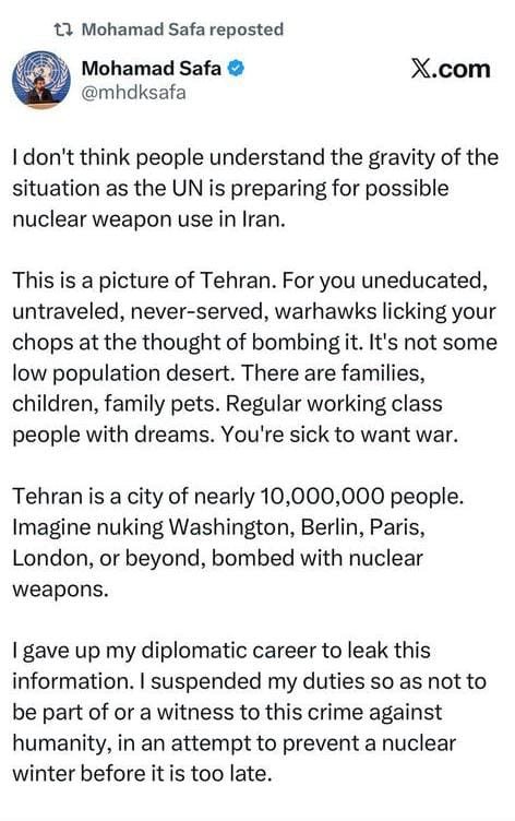 صفا، الذي شغل منصبًا دبلوماسيًا لسنوات، فجّر مفاجأة من العيار الثقيل عبر منشور له على منصة X، مؤكدًا أنه قرر التضحية بمسيرته المهنية من أجل كشف ما اعتبره خطرًا يهدد البشرية.