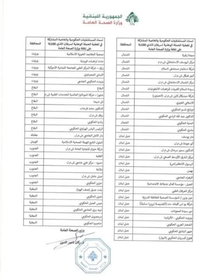 [هنا يمكن إدراج قائمة المستشفيات المشاركة مع العناوين إذا توفرت]
