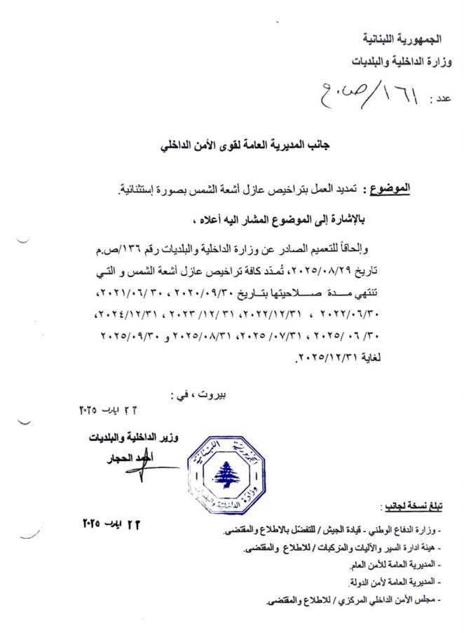 ويأتي هذا القرار في إطار التسهيلات الممنوحة للمواطنين، على أن تُراعى القوانين والأنظمة المرعية الإجراء خلال فترة التمديد