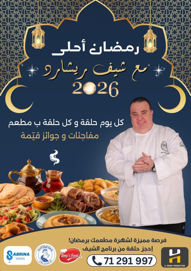 يعود الشيف ريشارد إلى الشاشة في رمضان 2026 من خلال برنامج جديد يحمل عنوان “رمضان أحلى مع شيف ريشارد”، في إنتاج ضخم تقدمه شركة 2 Vision Production، وبالاشتراك مع عدة مؤثرين الذين سيظهرون في فقرات خاصة داخل حلقات البرنامج مع مفاجئات و هدايا .