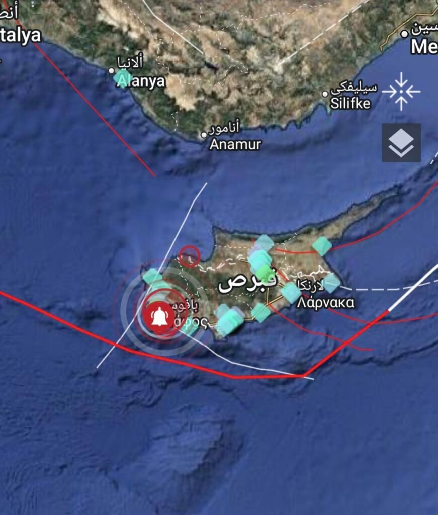 شهدت منطقة غرب جزيرة قبرص صباح اليوم زلزالًا بقوة 5.2 درجة على عمق 10 كم، تلاه هزات متتالية تتراوح شدتها بين 3 و5 درجات، الساعة 12:31 بتوقيت دمشق.