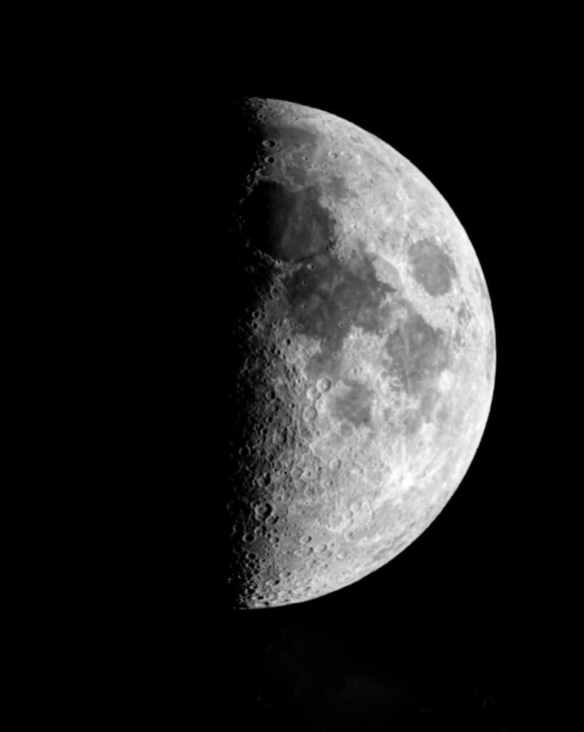 تشهد سماء المملكة هذا المساء القمر في طور التربيع الأول لشهر جمادى الأولى، حيث يضيء نصف قرصه فقط، ويكشف لنا أجمل التفاصيل على سطحه.