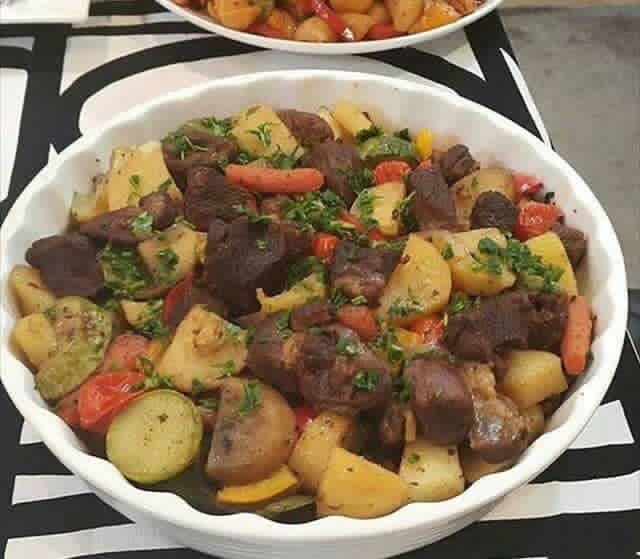 🍱 صينية خضار باللحم بنكهة الفحم والزعتر الأخضر