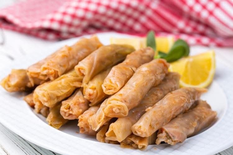 - بعد الاستواء، قلي الملفوف المحشي بالتوم والسمنة وعصير الحامض.