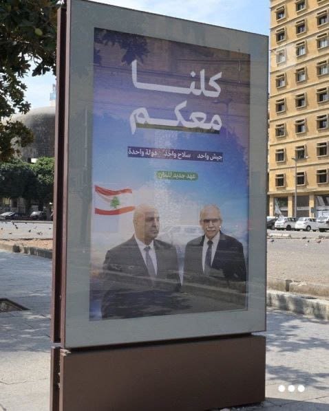 “كلنا معكم، جيش واحد، سلاح واحد، دولة واحدة، عهد جديد للبنان”.