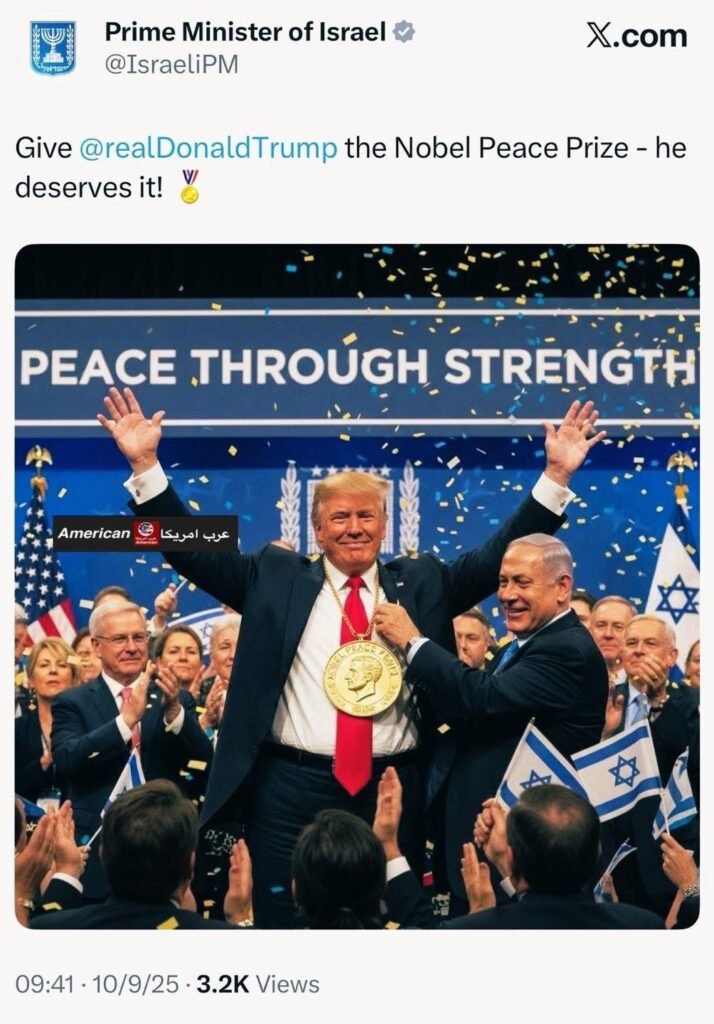 “أعطوا دونالد ترامب جائزة نوبل للسلام… إنه يستحقها!”