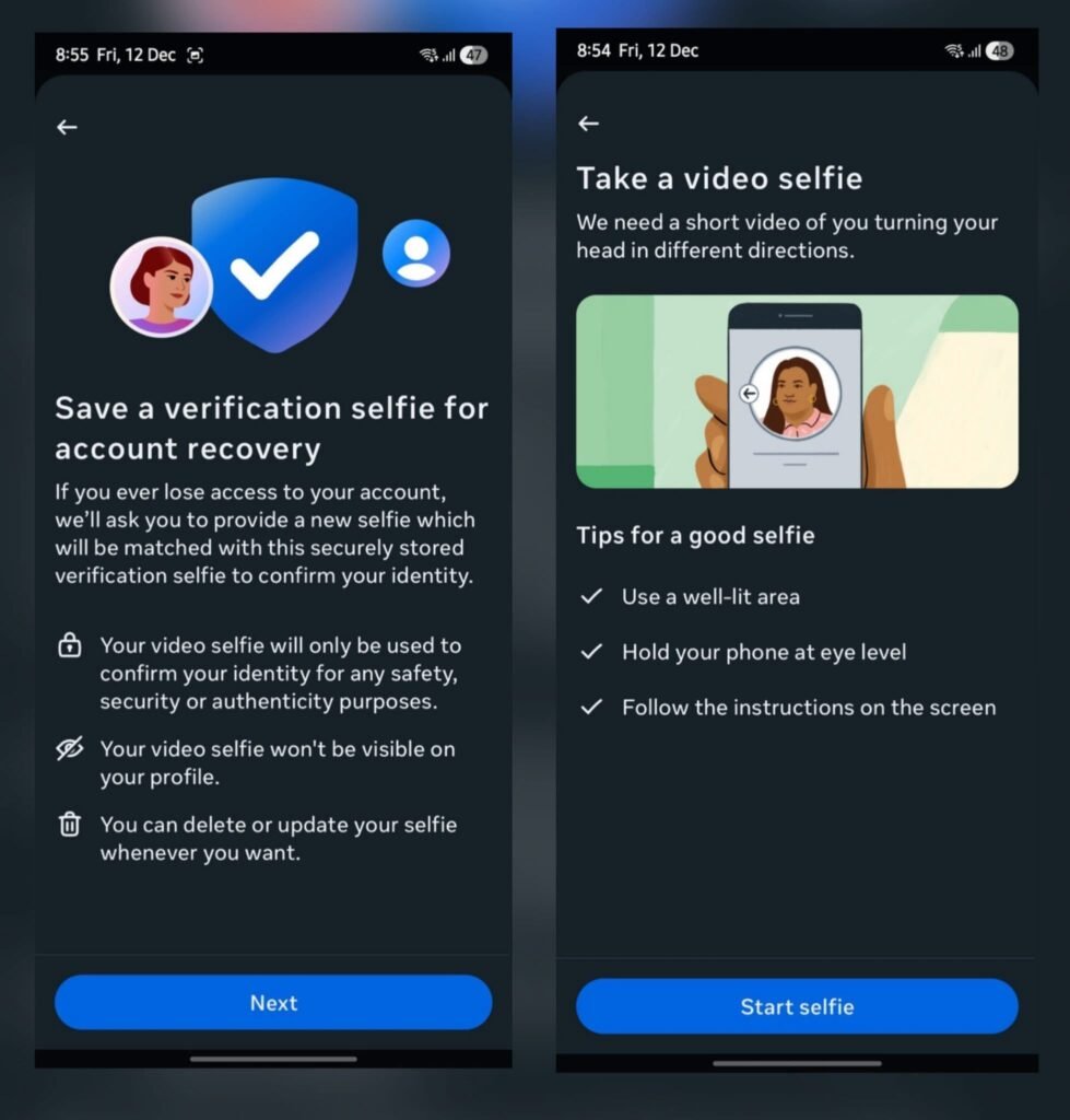 التقنية الجديدة تعتمد على فيديو سيلفي قصير تتعرّف من خلاله ميتا عليك بدلًا من الهوية الحكومية، لتأكيد أنك صاحب الحساب الحقيقي.