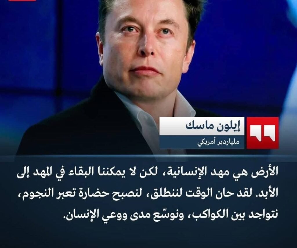 وبحسب النص المتداول، فإن ماسك يرى أن الأرض هي “مهد الإنسانية”، لكنه لا يمكن البقاء في المهد إلى الأبد، داعيًا إلى التفكير في وطن بديل بين النجوم، والبحث عن كوكب آخر يصلح للحياة.