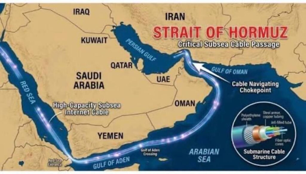 ✔️ صحيح إن كابلات الإنترنت البحرية تمر عبر مناطق حساسة مثل مضيق هرمز والبحر الأحمر