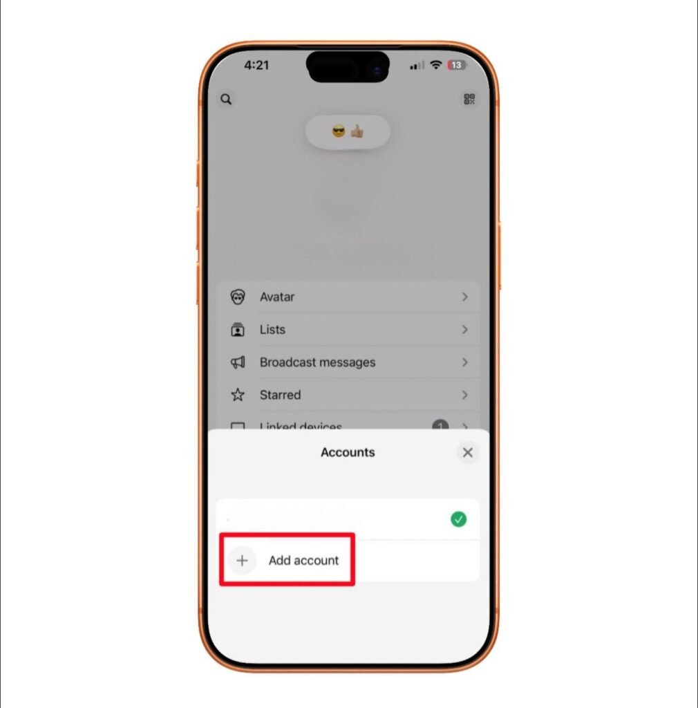 بمجرد تفعيلها في حسابك، ستجد خيار “Add Account” داخل إعدادات واتساب على الآيفون.